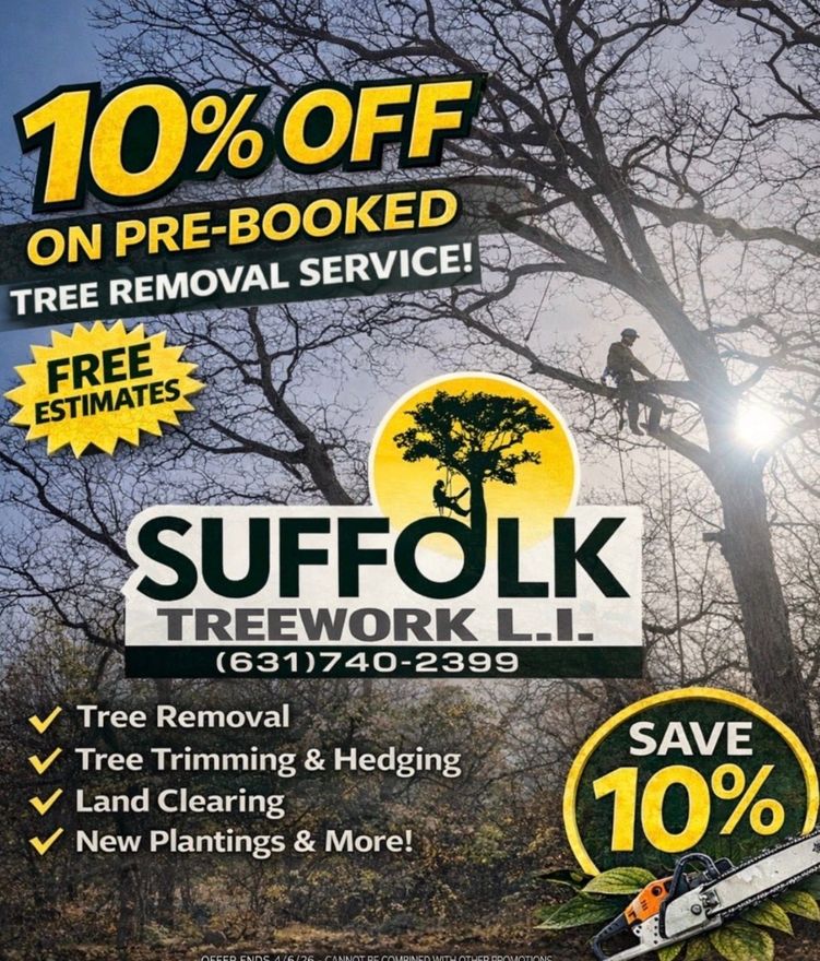 Welcome to Suffolk Tree Work LI, your final destination for all your tree care needs! Our team of experienced professionals is dedicated to providing top-quality tree trimming, removal, stump grinding, hedging, and emergency services. We understand that trees are essential to your property and that's why we are committed to helping you maintain their health and beauty.